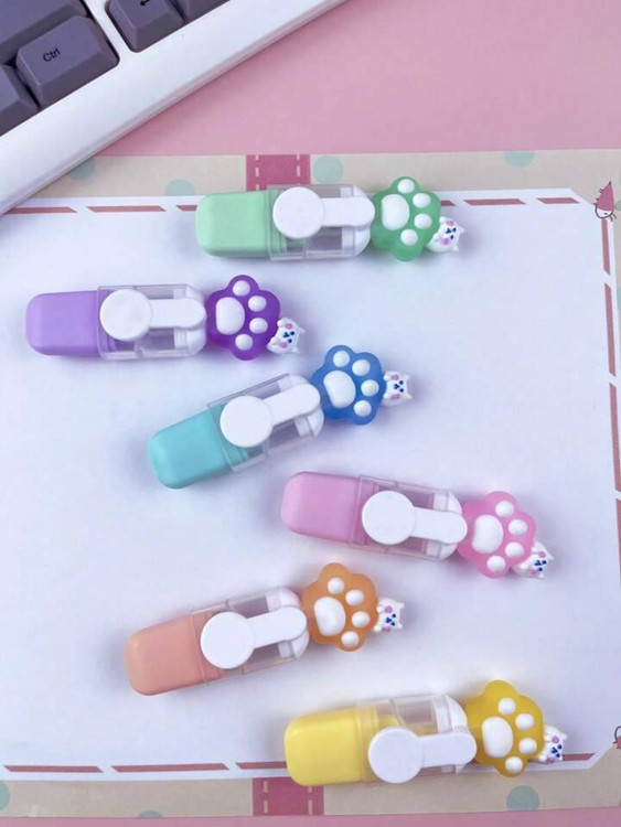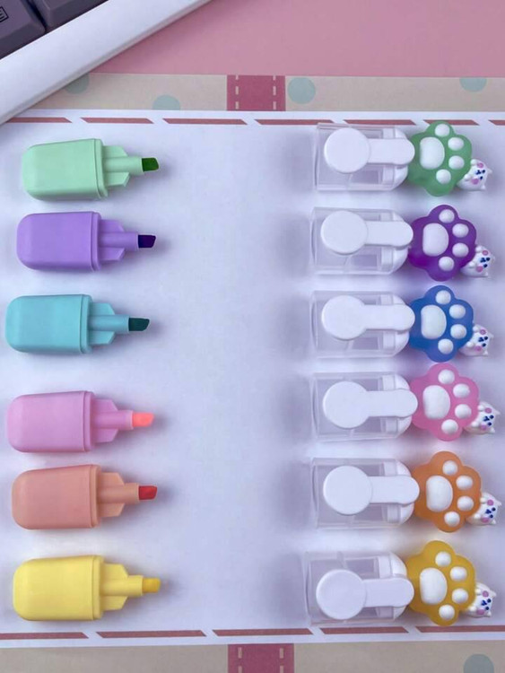 یک ست جذاب از هایلایترهای پنجه گربهای با رنگهای پاستلی متنوع شامل زرد، صورتی، بنفش، نارنجی، آبی، سبز و فیروزهای! طراحی خاص پنجه گربه همراه با درب کشویی، این هایلایترها را به گزینهای عالی برای مدرسه، دانشگاه و دفتر کار تبدیل کرده است. مناسب برای دوستداران نوشتافزارهای فانتزی و خاص!
