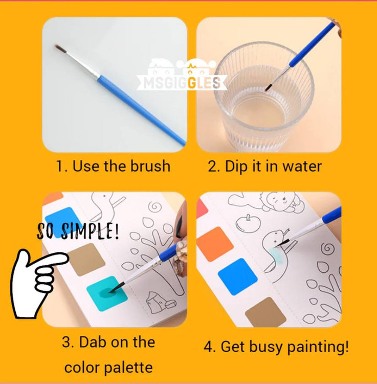 نقاشی با آب؟ بله! فقط قلممو را خیس کنید، رنگ بگیرید و شاهکار خود را خلق کنید! مناسب برای کودکان ۴ سال به بالا.