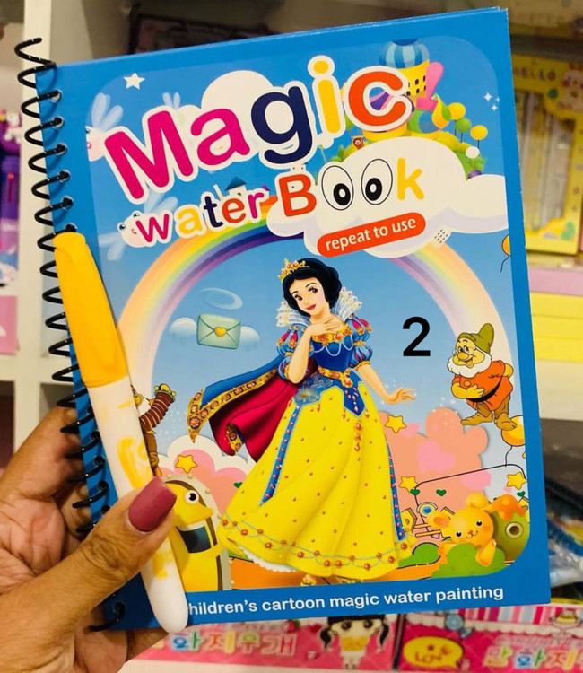 کتاب Magic Water Book یا کتاب جادویی آب یک نوع کتاب نقاشی مخصوص کودکان است که با استفاده از آب، تصاویر مخفیشده در آن ظاهر میشوند. این کتابها معمولاً شامل صفحاتی با طراحی خاص هستند که وقتی با آب خیس میشوند، رنگهای پنهان شده روی آنها نمایان میشود.